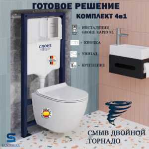 Инсталляция Grohe Solido с подвесным унитазом Santerika SAN.UNT.04, смыв «Торнадо», сиденье микролифт