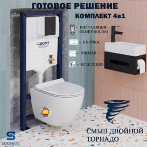 Инсталляция Grohe Solido с подвесным унитазом Santerika SAN.UNT.02, смыв «Торнадо», сиденье микролифт